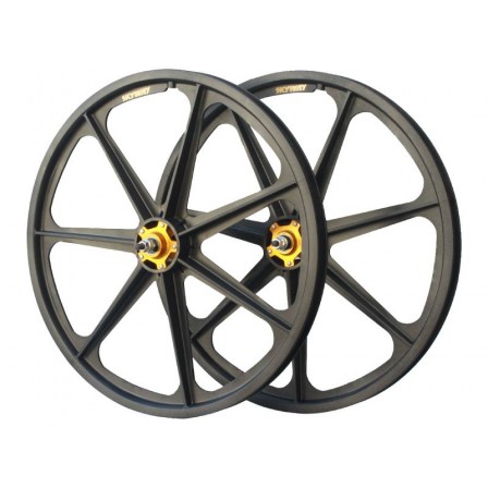 SKYWAY TUFF Graphite Gold 9T Rivet 20" Wheel Set Black/GoldReinforced with a Graphite Composite, these wheels become stiffer with less flex over the Zytel Nylon material and also slightly lighter...